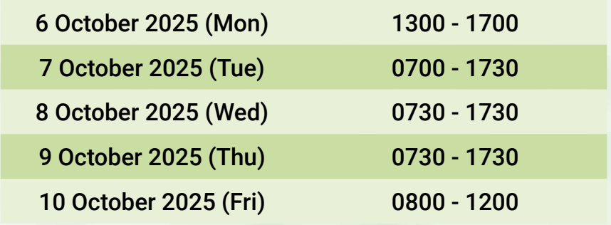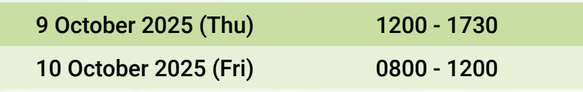 The WVPAC 2025 has been granted 30 CPD credits. Malaysian delegates are required to complete an attendance form at the Registration Counter, Conference B Foyer, Level 2, Borneo Convention Centre Kuching, which will only be available from: